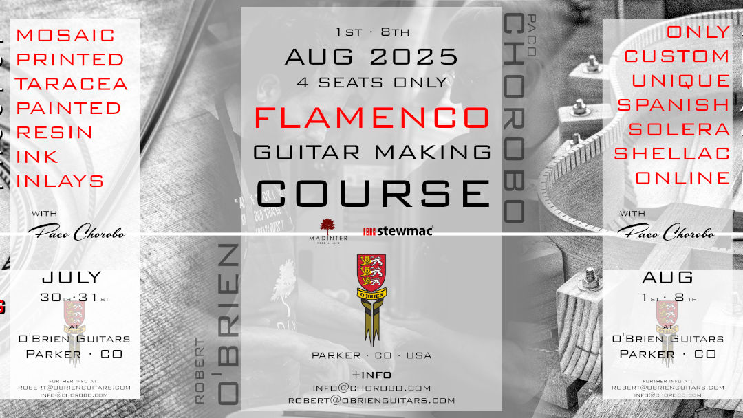 If you are interested in being part of this 2026 edition you can contact Robert at robert@obrienguitars.com or Paco at info@chorobo.com